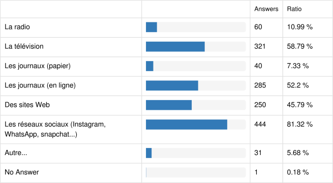 1. Quels médias utilisez vous pour vous tenir informé(e) de la crise sanitaire?