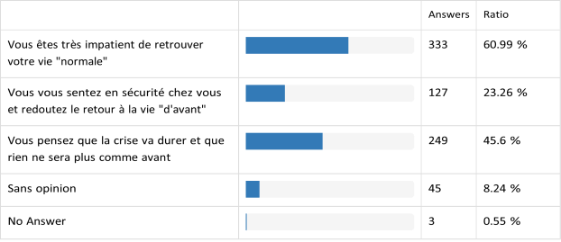 - Comment êtes-vous affecté(e) par la crise sanitaire? : Affecté(e) par la privation de vie sociale (voir sa famille, ses amis…)